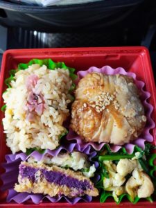| 那覇空港のサクララウンジにて休憩し、石垣へ向かう機内で、事前に買ったお弁当をいただきました。 | ![]() |