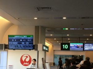 熊本空港行きは、10番搭乗口からの出発。 保安検査場を過ぎてすぐの場所にあるので、歩く手間が省けます。 大概は前日までに搭乗案内が来ますので、どの搭乗口からなのかをチェックし、空港の地図と照らし合わせて、近いか遠いかが分かります。 |