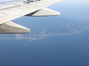 | この日は北方向へ飛び立ち、右旋回しながら空港のすぐ東側を抜けていくというルート。座席が右側(K)なので、空港の全体像が眺められました。 | ![]() |