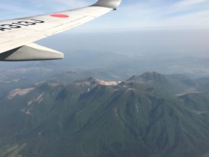 | 九重山を眺めつつ着陸態勢でどんどん高度を下げていきます。 | ![]() |