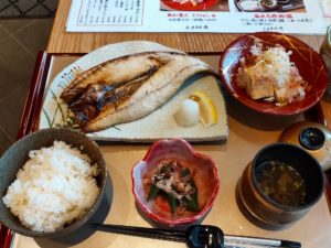 サバというと焼き寿司に使われるのが多いですが、アツアツの浜焼きをほおばると、身もふっくらとしていてボリュームもあり、おろしと一緒に食べてみたりとご飯が進みます。