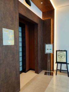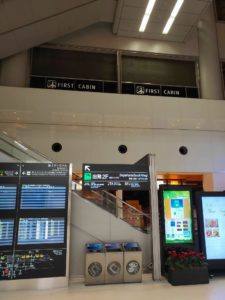 空港の到着口行きエスカレーターを上がると、宿のファーストキャビン。 この日はビジネスタイプの天井が高い部屋を取れました。 |