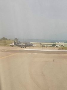 | 13:05発のバスで小松空港へ。1時間ほどで到着。さほど時間はないもののさくらラウンジで喉を潤していく。 | 小松は自衛隊との共存なので離発着の際にいろいろな機体を眺める事も出来ます。 | ほぼ満席で出発します。 14:55発と中途半端な時間なんだけど利用率高いですね。 |