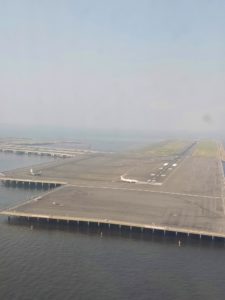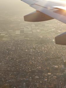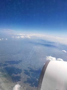 | 岐阜の各務ヶ原飛行場を見たりしながら浜松あたりで海へ出てという定番ルートを飛行します。 | 羽田空港は沢山滑走路があるので、場所によって乗継が大変。山形行きはバスラウンジ81とかなり遠かったー。 | ラウンジ休憩後山形行きに。1時間のフライトで山形市内あたりで下が良く見えてきます。 |