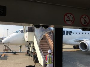 地方便では多く使われるエンブラエル社のE190。今回はクラスJに搭乗。修行していることを言わなければ、ひっそりと達成の喜びを一人で味わうことが出来ます(笑)。 正直、記録がCAさんのほうで分かっていて声かけられるのかな?と思っていたから、そういう事は無いようです。 |