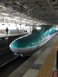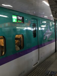 | 仙台経由にするのは、大宮までノンストップのはやぶさ号に乗れるというのもあります。 今回たまたま横のラインがラベンダー色(JR北海道色)のはやぶさに乗ることが出来ました。普段はピンクのラインですよー。 これで上野まで乗車し、地下鉄に乗り換えです。 |