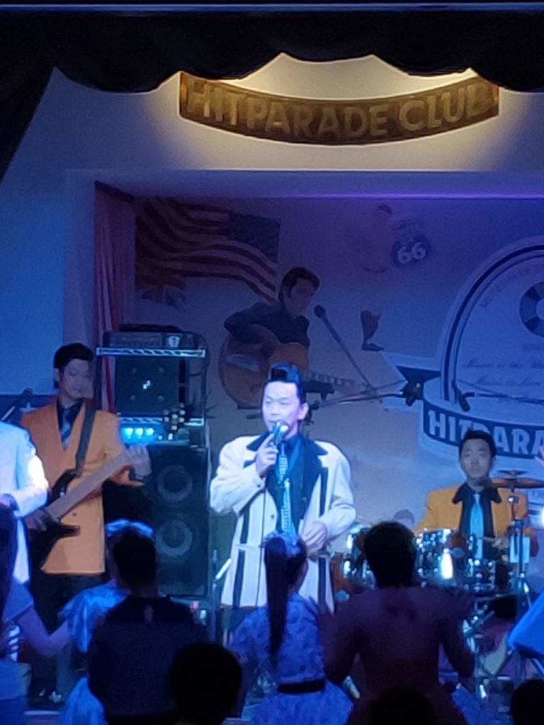 ヒットパレーダースは、このライブハウスの専属バンドで、ここで歌うほか、大分県をはじめ九州内でのイベントに参加したりもしています。