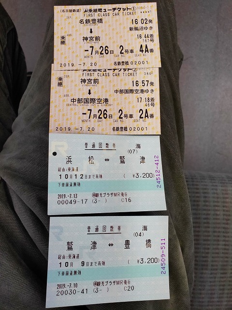 名鉄は5月からインターネットでチケットレスのミューチケット(特急座席指定券)を発行出来るようになりましたが、自分のように、豊橋~神宮前で乗り継いで中部国際空港に行きたい場合の乗継特急券はまだ取り扱いしていないので、あらかじめ指定券を確保しておきました。