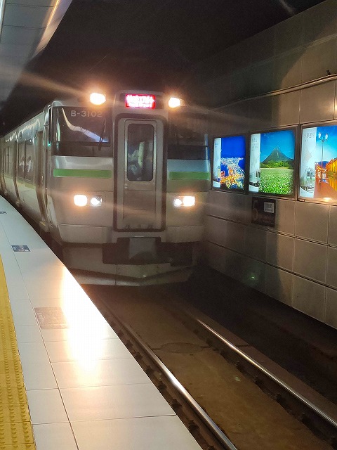 豊平川の花火大会があって、浴衣姿の人が沢山ホームにいました。一部は特急で岩見沢とかに行く人もおり、全般的に混んでいました。