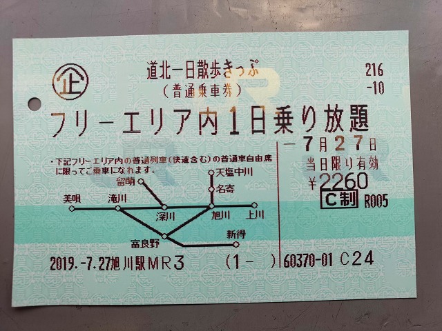 ついでに道北1日散歩きっぷ(2260円)を購入しました。