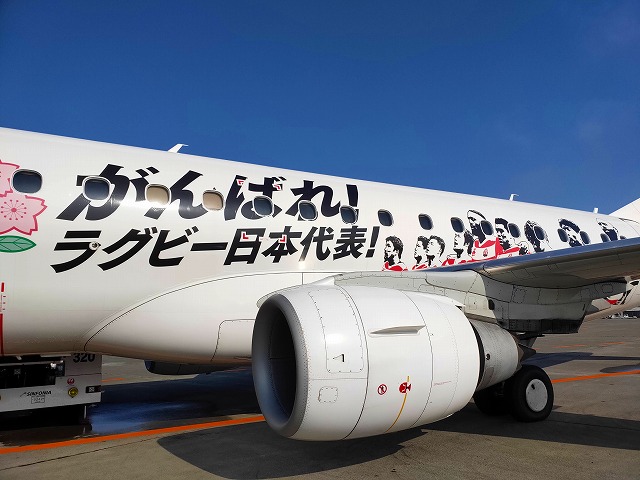 飛行機もラグビー応援塗装でした。