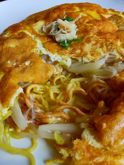 中には、普通の焼きそばとかた焼きそばがバランスよく入っていて、シャキシャキした玉ねぎが入っています。
