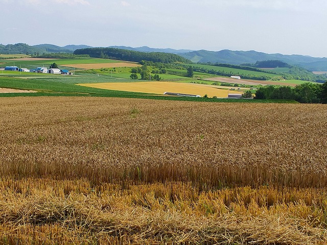 この日は西風だったので着陸する際には一旦網走湖のほうまで出てUターンする感じで着陸。パッチワークというわけではないけど、黄色く輝いた畑が多いのが特徴です。