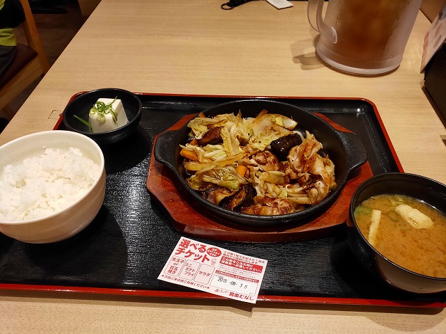 この地域のチェーン店である「宮本むなし」でナスみそ炒め定食を食べて長い一日が終わりました。