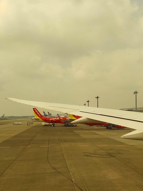 この飛行機は2回目ですが、窓のフィルターをボタンを押しながら調節できるのは初めて知りました。写真のフィルター効果もありそうです。