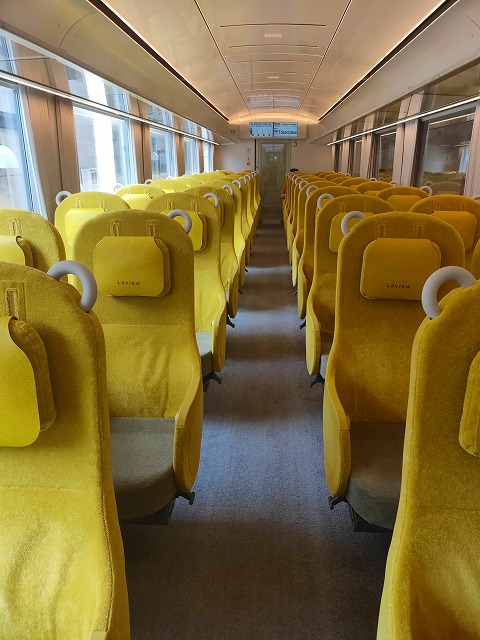 西武らしくコーポレートカラーの黄色が鮮やかな車内です。