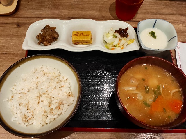 牛タンの佃煮とかが入ったとん汁セットをいただきましたが、麦とろセットや朝カレーとかもありますよ。