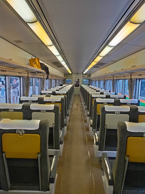 この時間でも乗車率は高め。夏休み期間なので平日でも子供連れが乗ってきてますね。