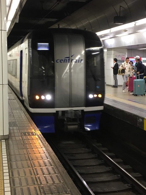 名古屋駅すぐ近くの宿だったけど名鉄のホームは駅の反対側になるのでてくてく歩いていき、ネット購入したミュースカイに乗車。相変わらず6:28の列車は8両あるけど満席での発車。金山や神宮前でどんどん乗ってきます。