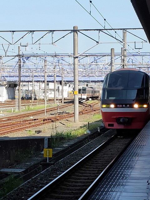 お盆休みの最初の土曜日ということで恐ろしい混雑を想定していましたが、まだ東京方面から人がくる時間でもないし、早朝の京都方面に行く人たちも一段落したのか転換クロスシートの313系6両で余裕持って座れました。