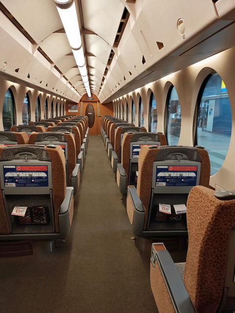 6両のうち、2両がスーパーシートです。自分はネット割引で一般席価格510円でスーパーシートに乗れるようにして、1人用座席を確保しました。