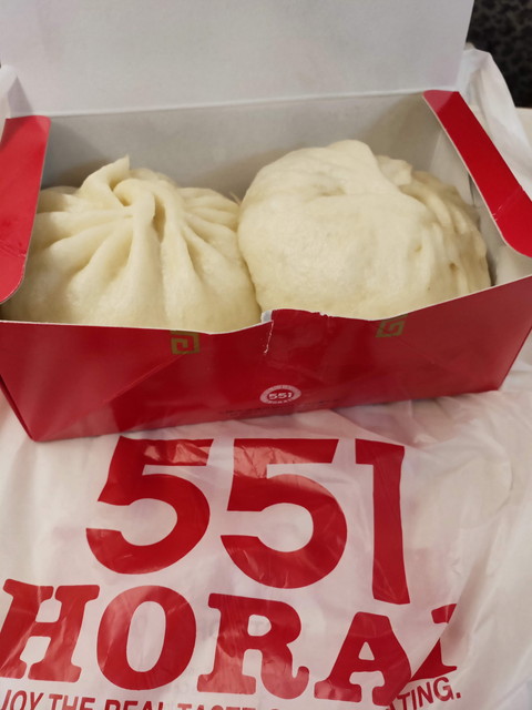 それほど動いていないので、お昼はちょうど駅構内にあった551で豚まんを買って食べていきました。