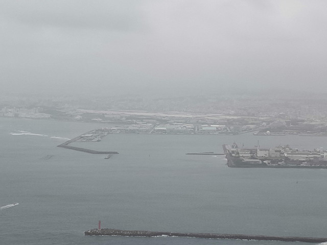 那覇空港が近づくと雨が降っており、かなり煙った感じです。