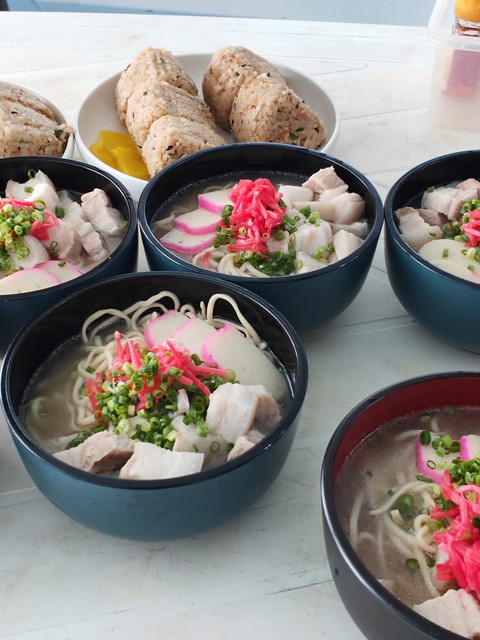 今日の献立は八重山そばとじゅーしーのおにぎりです。