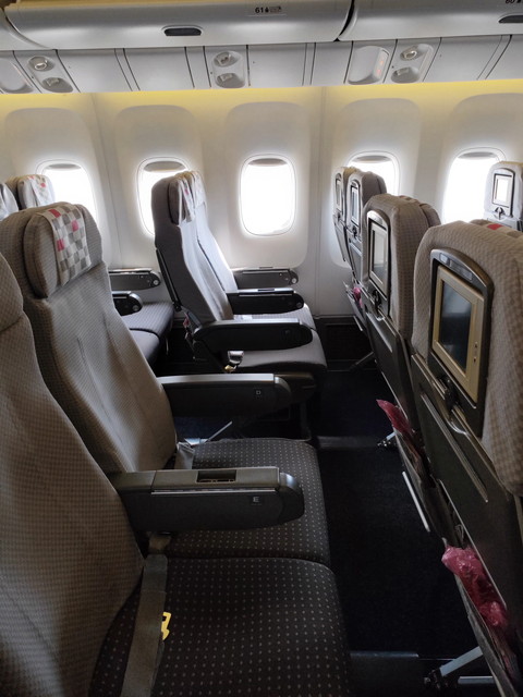 飛行機は羽田からの折り返しの767で国際線仕様。といっても、国内線で使うのでWIFIは無いし、機内エンタテイメントもないからむしろ哀しい。