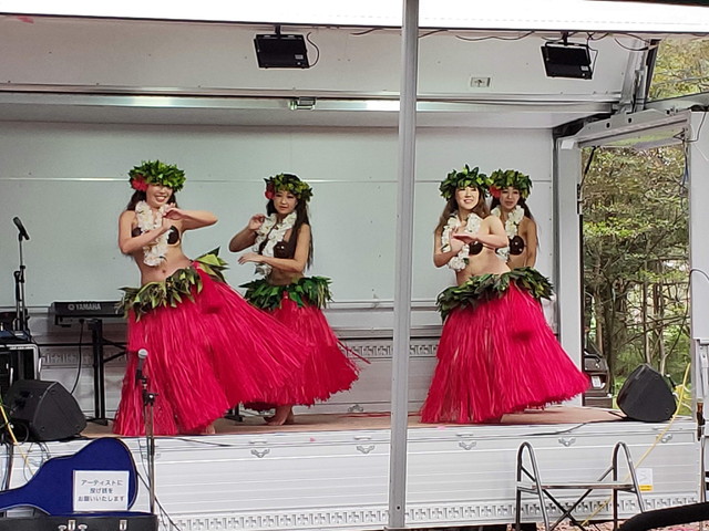 ハワイアンダンスと違い、テンポ速い曲に合わせての激しいダンスは、森の中を明るく彩ってくれました。