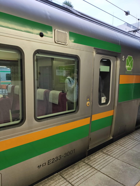 上野東京ラインの小田原行きに乗車。ただし各駅停車なので、3時間20分くらいかかります。さすがにグリーン車(780円)を利用しました。