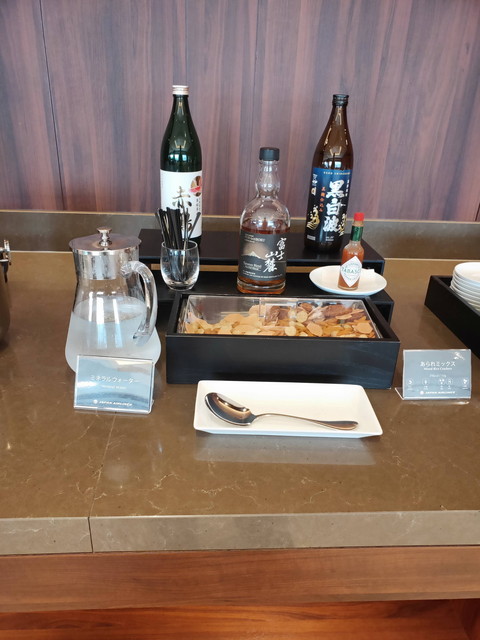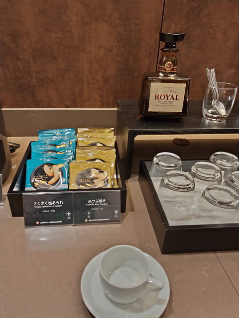 あられなどのおつまみとコーヒーや紅茶、ソフトドリンクの他、ウィスキーやビールとかも飲むことが出来ます。
