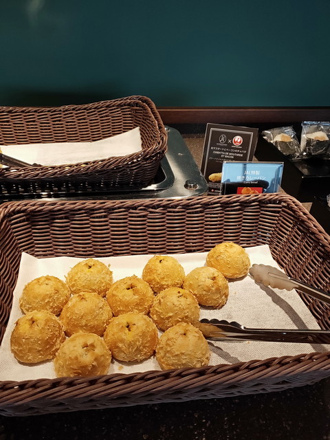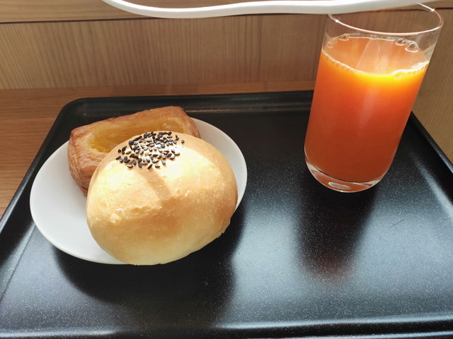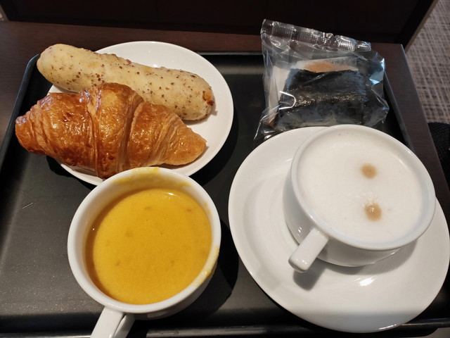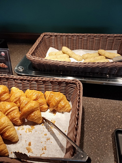 パンが2種類、クロワッサンと後ろのはハムとか織り込んでました。