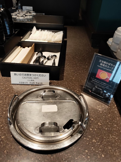 味噌汁と、万次郎かぼちゃと野菜のスープが選べます。