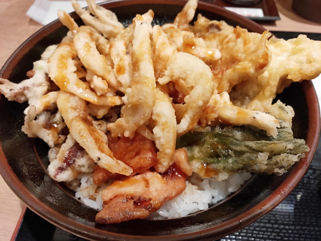 白えびとブリとホタルイカの天丼(1790円)を奮発。もちろん美味しかったですし、アクセントの赤かぶやタラの芽も美味しかったです。