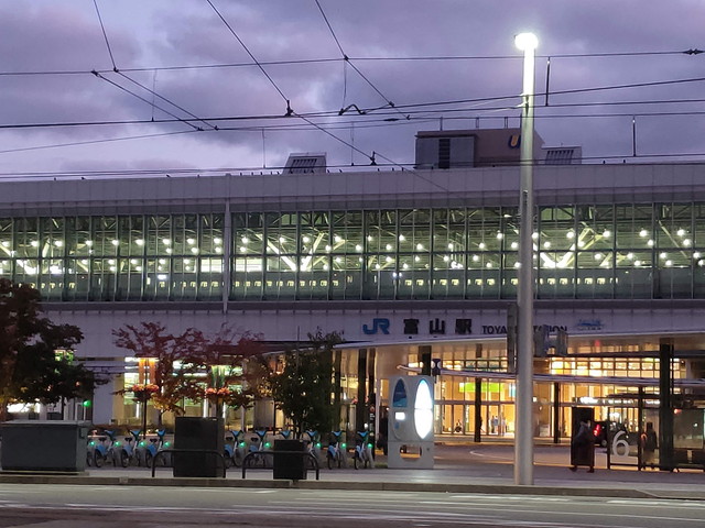 富山駅は朝6時前だが、既に路面電車も動き始めており、金沢からのかがやきが早々に着いて東京へ運んでいくだろう。