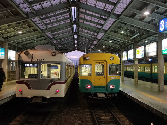 駅舎も駅名標もかなりくたびれた感じの駅を止まっては動きの繰り返しをしながら、分岐駅の寺田駅を過ぎる。扇状にホームが分かれるのは私鉄らしい。