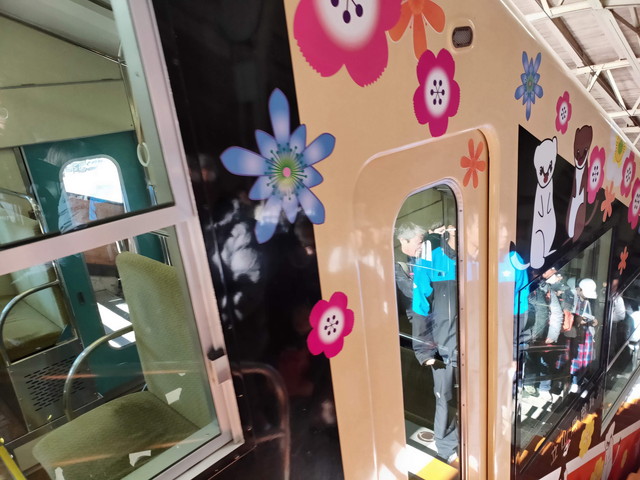 ルート上で見られるような動物とかがあしらわれた可愛い車両に乗りこみます。