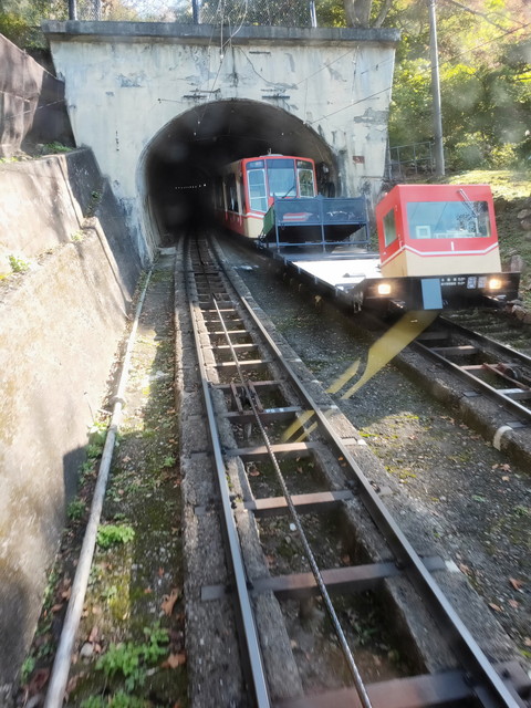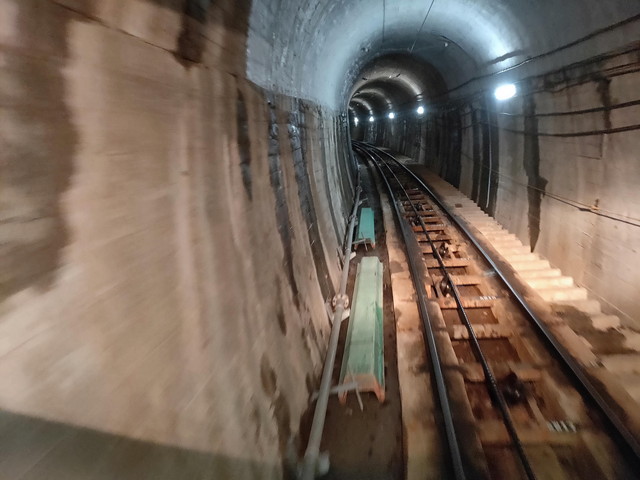 1.3キロの路線で、490mを登っていきます。最大で29度の勾配があり、最初のトンネルは左にカーブしながら中間点まで進んでいきます。