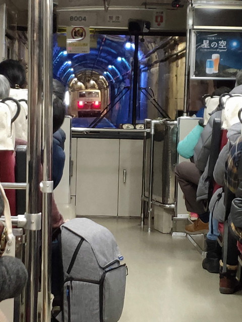 トンネル内は約10分の走行になりますが、途中で行き違いがあるので、何台かに分かれても同時に発車していきます。団体はどの車両と分けられたりしますが、個人は特に車両指定なく乗れました。