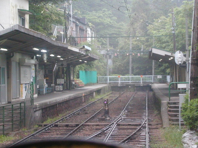 ケーブルカーは下のケーブルがからから音がすれば下から列車がやってくる合図です。ここから見渡すと強羅駅まで見えます。途中の公園下駅に着くと一旦静かになり、また音がすると到着といった感じ。この日はほとんどが外国人観光客で占められてました。