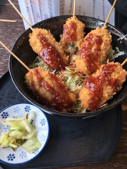 あさりフライ丼をいただきました。オープンテラスとかもあり、家族連れで賑わっています。公園内のアトラクション類は別払いになるので、景色を見に来るだけとしました。
