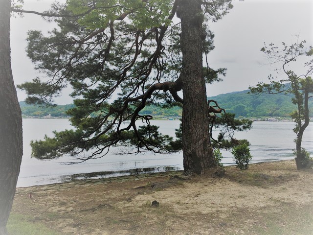こちらは斜め横から見る感じになるので、せき止めているような様子が分かります。それにしても自然の不思議を感じます。真ん中だけ盛り上がって、松林が立ち並んでいるのですから。