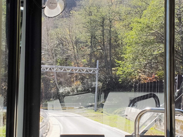 扇沢には定刻通りの13:51に到着。最後は信濃大町までの路線バスに乗ります。