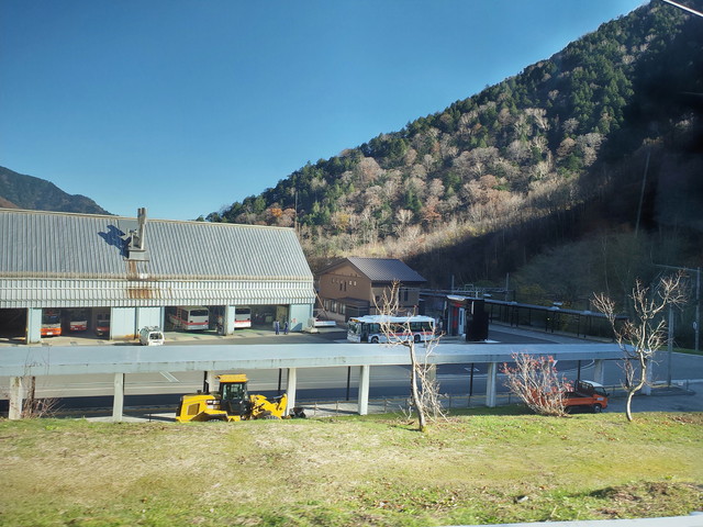 前は奥のシェルターぽい建物から乗りましたが、今回は手前のバス停のような場所に到着のようです。