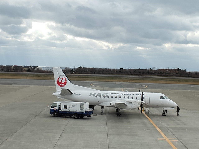 丘珠空港から函館空港に着いて、ここから奥尻空港へ乗り継ぎます。
