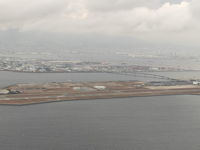 神戸空港の脇を通って東から着陸