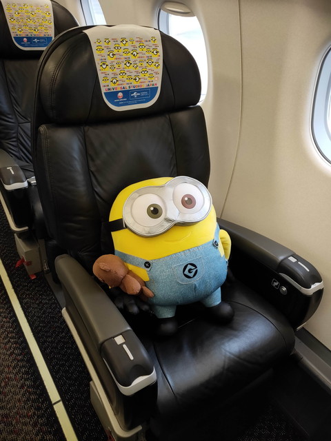 朝通った魔法の扉で残りのチケットを発券してもらい、ラウンジで少し休憩したのち鹿児島行きへ。ちょうどミニオンジェット機に当たりました。