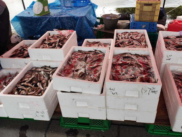 さっそく魚介類の販売をはじめ、ラーメンの展即などが始まり、折り返しで東京へ向かう人たちが足を止めていました。