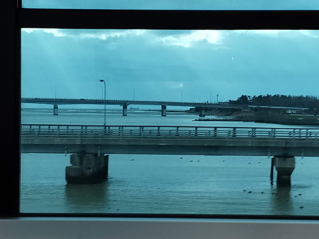 見どころである橋梁を通過していきます。ここが八郎潟から海につながる場所になります。この区間以外は海とは離れた場所を走ります。